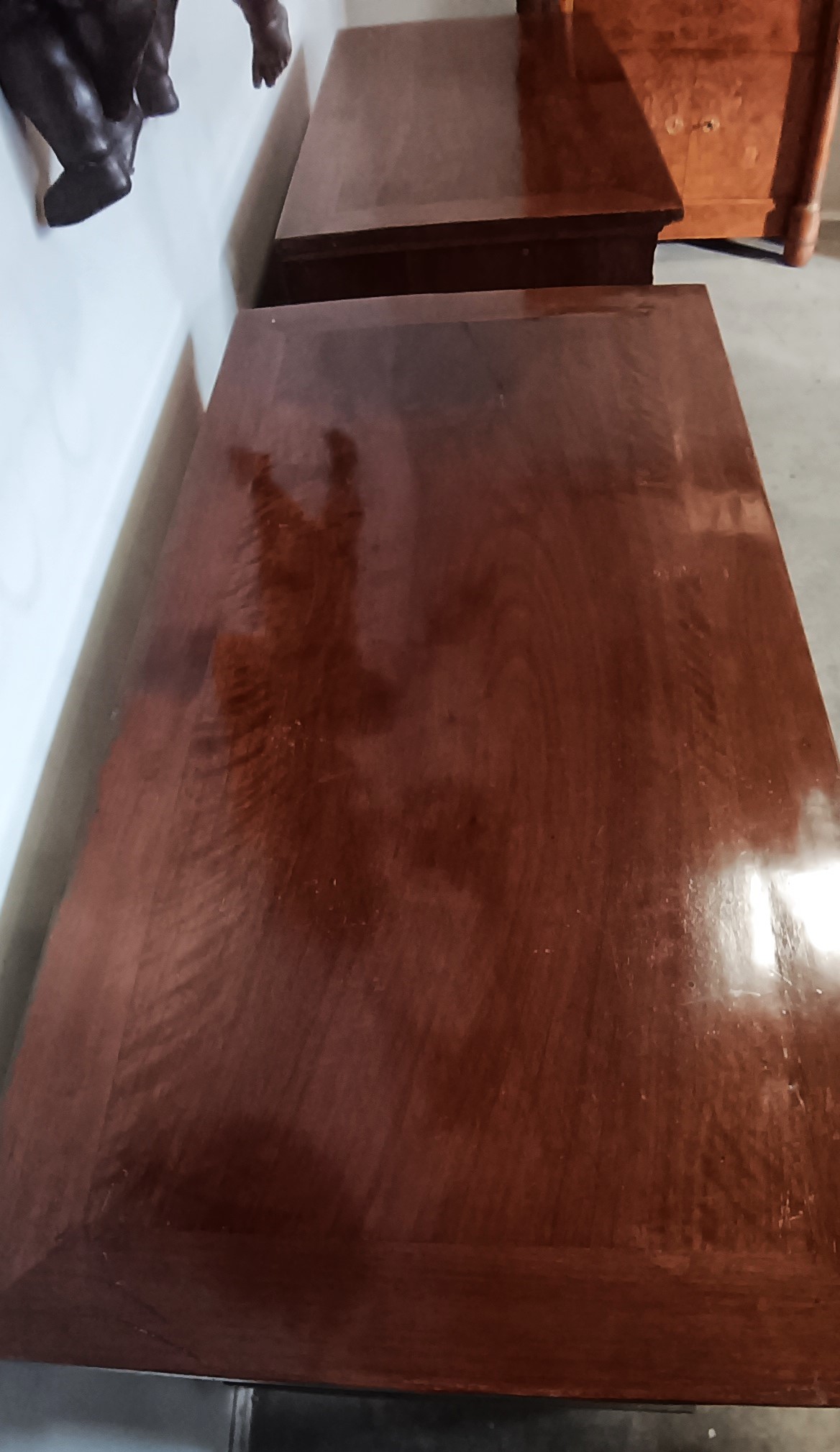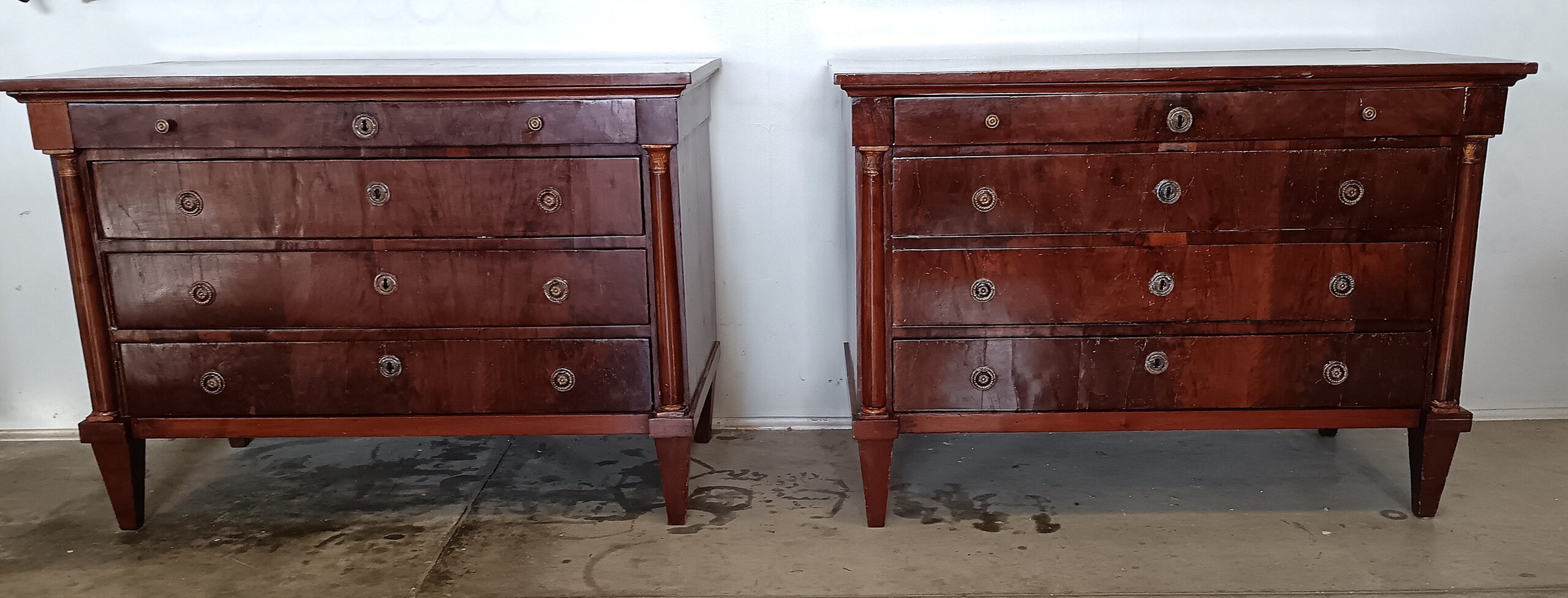 COPPIA DI CASSETTONI NEOCLASSICI LASTRONATI IN NOCE SU STRUTTURA IN NOCE